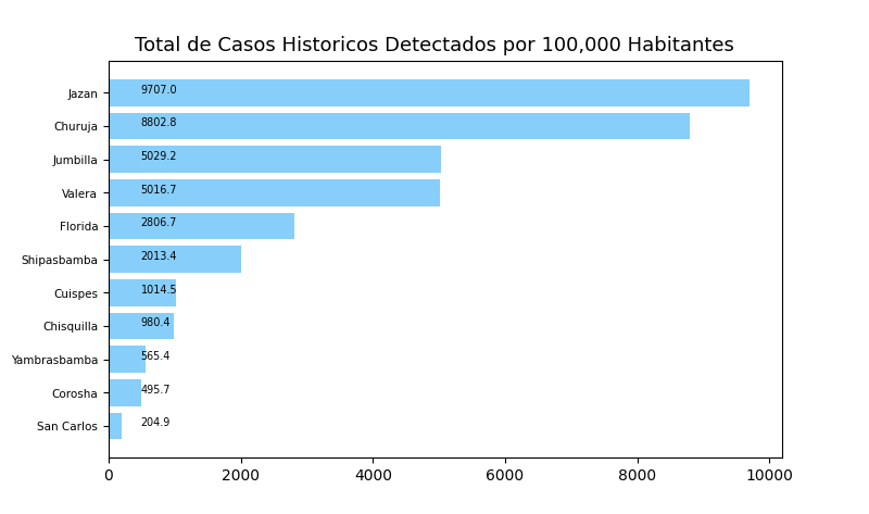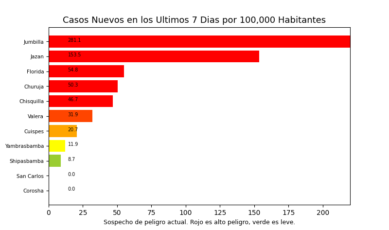 Tome en cuenta que es común tener casos reportados en un distrito donde personas no viven a veces causando resultados exageradamente alto o bajo y sesgos en los datos. Por eso, interprete los resultados como tendencias del distrito y sus distritos cercanos.