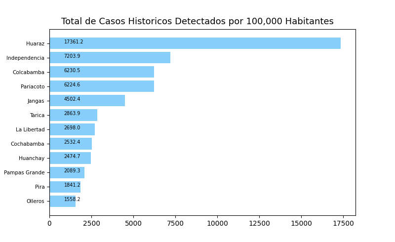 Tome en cuenta que es común tener casos reportados en un distrito donde personas no viven a veces causando resultados exageradamente alto o bajo y sesgos en los datos. Por eso, interprete los resultados como tendencias del distrito y sus distritos cercanos.