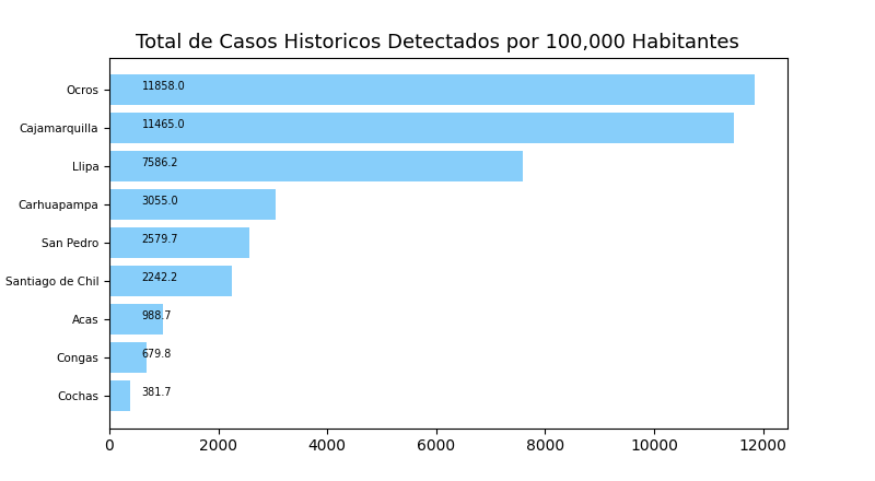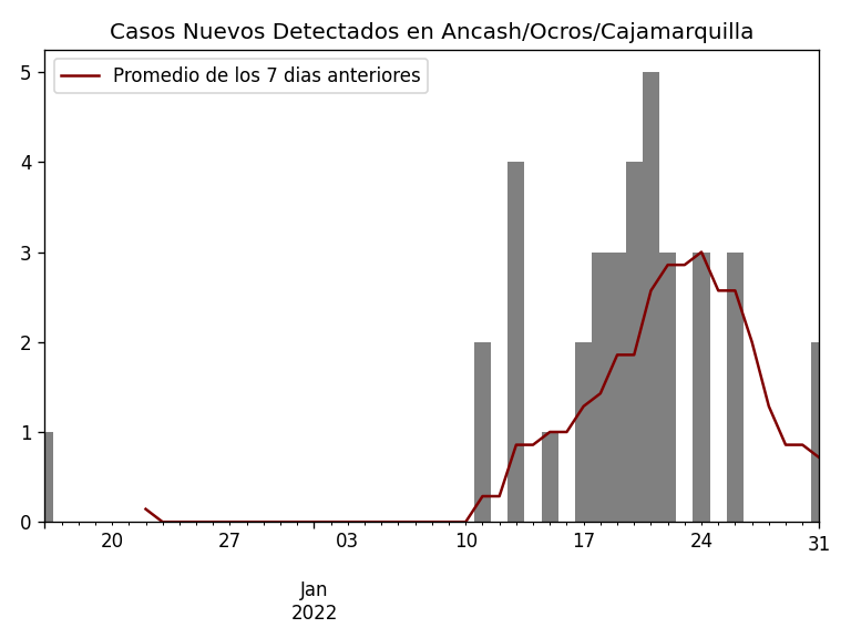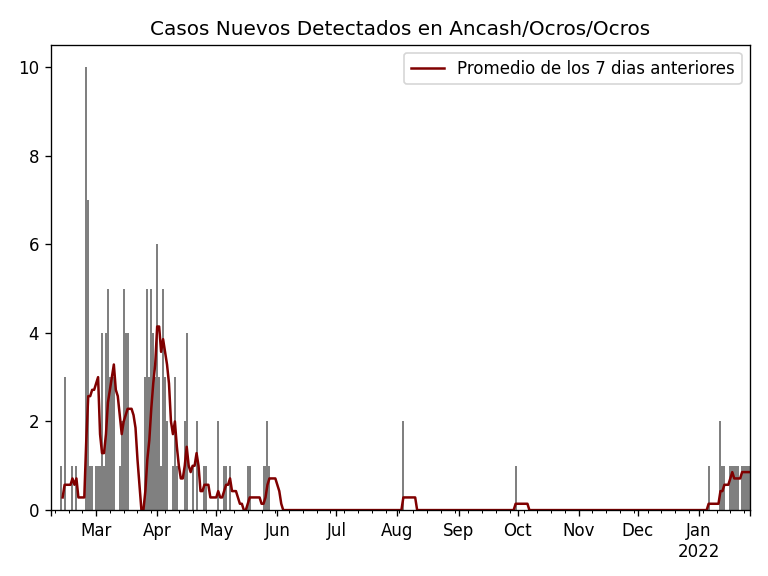 Casos de COVID-19 en ANCASH / OCROS por Distrito