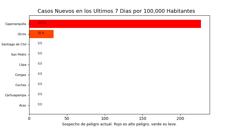 Tome en cuenta que es común tener casos reportados en un distrito donde personas no viven a veces causando resultados exageradamente alto o bajo y sesgos en los datos. Por eso, interprete los resultados como tendencias del distrito y sus distritos cercanos.