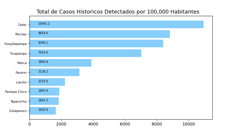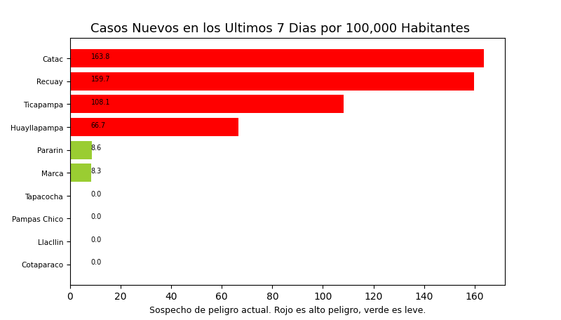 Casos de COVID-19 en ANCASH / RECUAY por Distrito