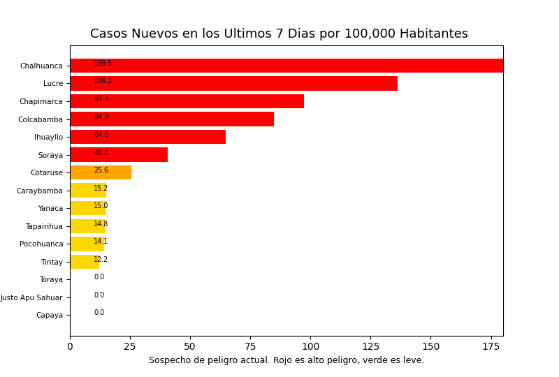 Tome en cuenta que es común tener casos reportados en un distrito donde personas no viven a veces causando resultados exageradamente alto o bajo y sesgos en los datos. Por eso, interprete los resultados como tendencias del distrito y sus distritos cercanos.