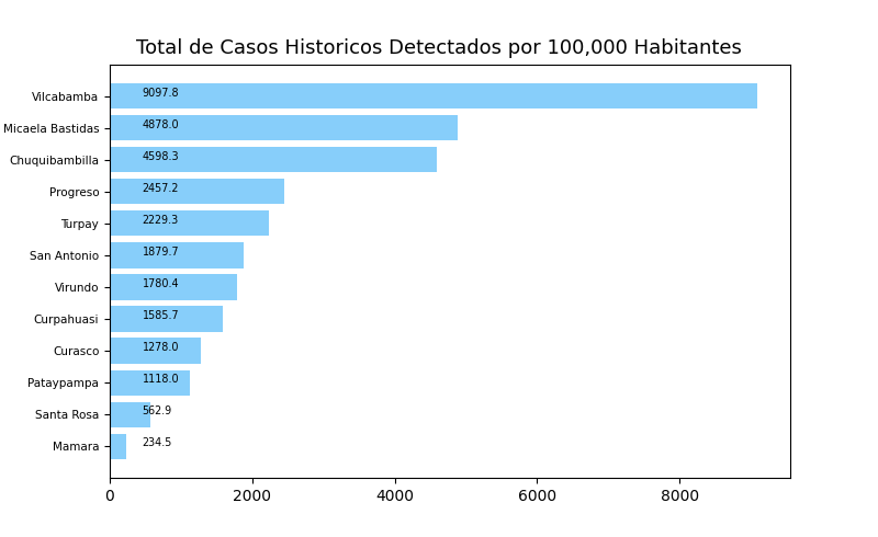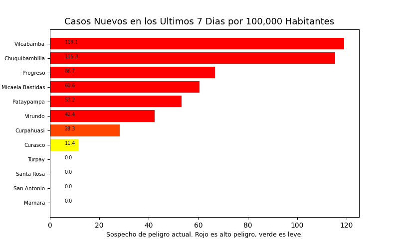 Tome en cuenta que es común tener casos reportados en un distrito donde personas no viven a veces causando resultados exageradamente alto o bajo y sesgos en los datos. Por eso, interprete los resultados como tendencias del distrito y sus distritos cercanos.
