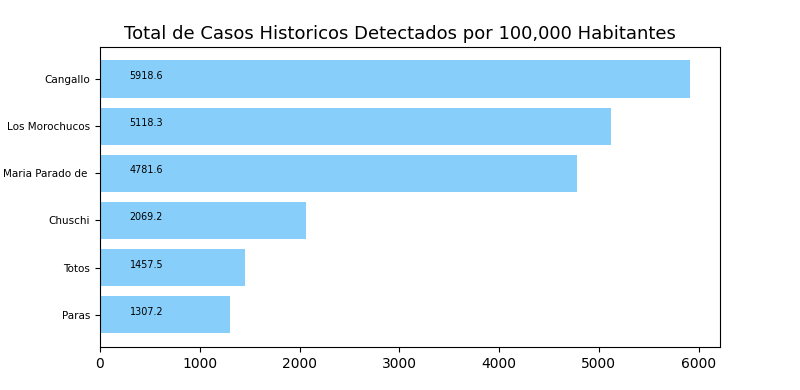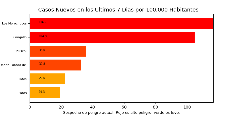 Tome en cuenta que es común tener casos reportados en un distrito donde personas no viven a veces causando resultados exageradamente alto o bajo y sesgos en los datos. Por eso, interprete los resultados como tendencias del distrito y sus distritos cercanos.