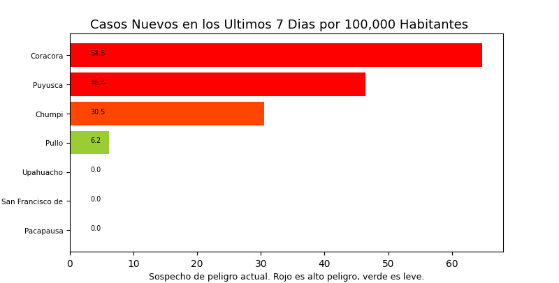 Tome en cuenta que es común tener casos reportados en un distrito donde personas no viven a veces causando resultados exageradamente alto o bajo y sesgos en los datos. Por eso, interprete los resultados como tendencias del distrito y sus distritos cercanos.