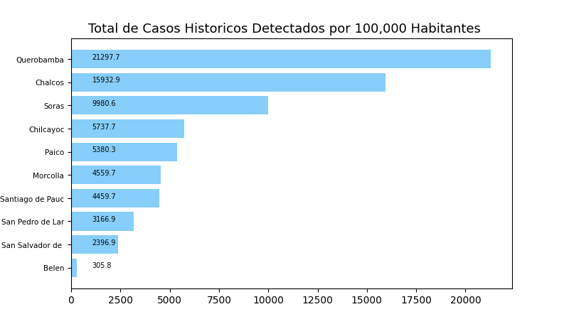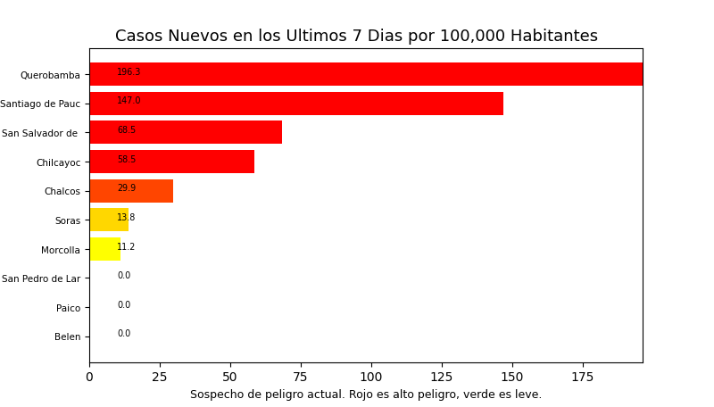 Tome en cuenta que es común tener casos reportados en un distrito donde personas no viven a veces causando resultados exageradamente alto o bajo y sesgos en los datos. Por eso, interprete los resultados como tendencias del distrito y sus distritos cercanos.