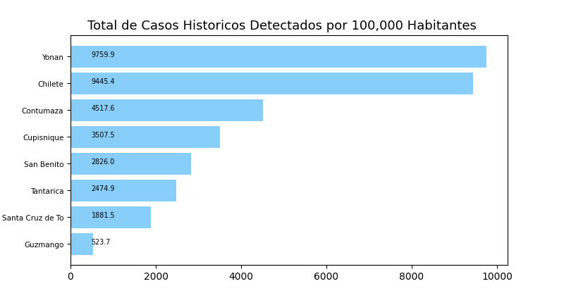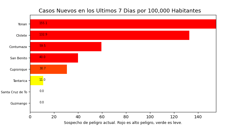 Tome en cuenta que es común tener casos reportados en un distrito donde personas no viven a veces causando resultados exageradamente alto o bajo y sesgos en los datos. Por eso, interprete los resultados como tendencias del distrito y sus distritos cercanos.