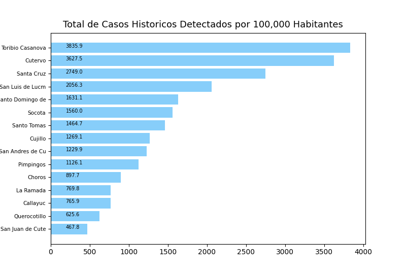 Tome en cuenta que es común tener casos reportados en un distrito donde personas no viven a veces causando resultados exageradamente alto o bajo y sesgos en los datos. Por eso, interprete los resultados como tendencias del distrito y sus distritos cercanos.