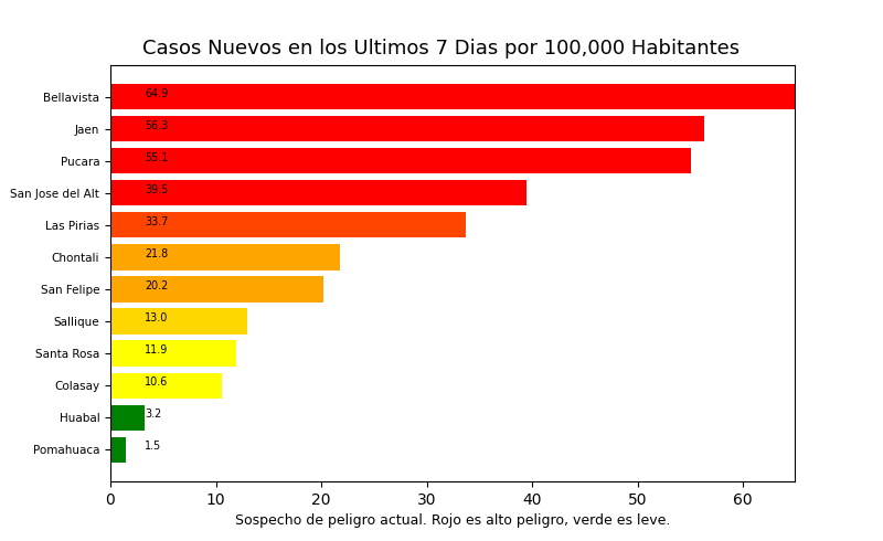 Tome en cuenta que es común tener casos reportados en un distrito donde personas no viven a veces causando resultados exageradamente alto o bajo y sesgos en los datos. Por eso, interprete los resultados como tendencias del distrito y sus distritos cercanos.