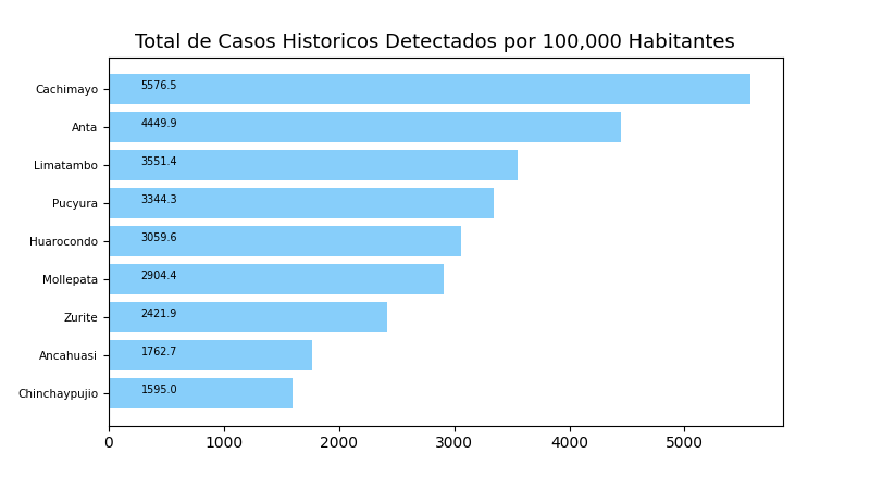 Tome en cuenta que es común tener casos reportados en un distrito donde personas no viven a veces causando resultados exageradamente alto o bajo y sesgos en los datos. Por eso, interprete los resultados como tendencias del distrito y sus distritos cercanos.