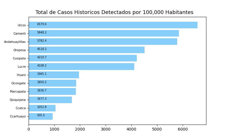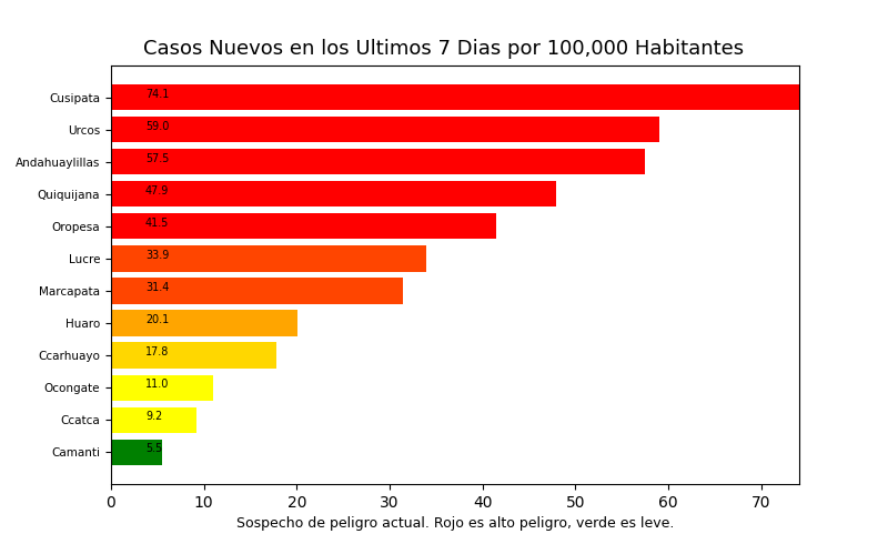Tome en cuenta que es común tener casos reportados en un distrito donde personas no viven a veces causando resultados exageradamente alto o bajo y sesgos en los datos. Por eso, interprete los resultados como tendencias del distrito y sus distritos cercanos.