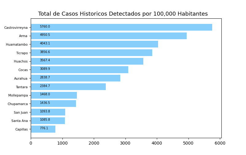 Casos de COVID-19 en HUANCAVELICA / CASTROVIRREYNA por Distrito