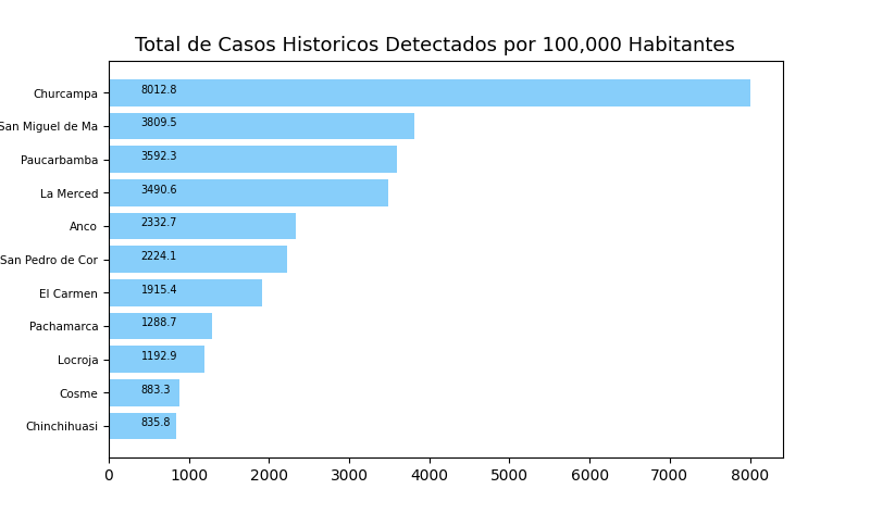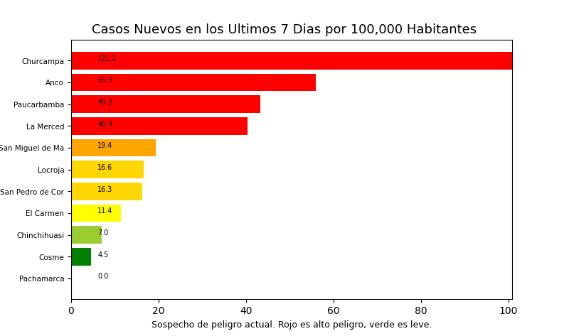 Tome en cuenta que es común tener casos reportados en un distrito donde personas no viven a veces causando resultados exageradamente alto o bajo y sesgos en los datos. Por eso, interprete los resultados como tendencias del distrito y sus distritos cercanos.