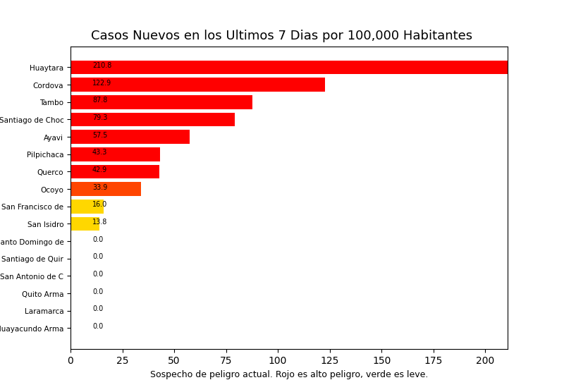 Tome en cuenta que es común tener casos reportados en un distrito donde personas no viven a veces causando resultados exageradamente alto o bajo y sesgos en los datos. Por eso, interprete los resultados como tendencias del distrito y sus distritos cercanos.
