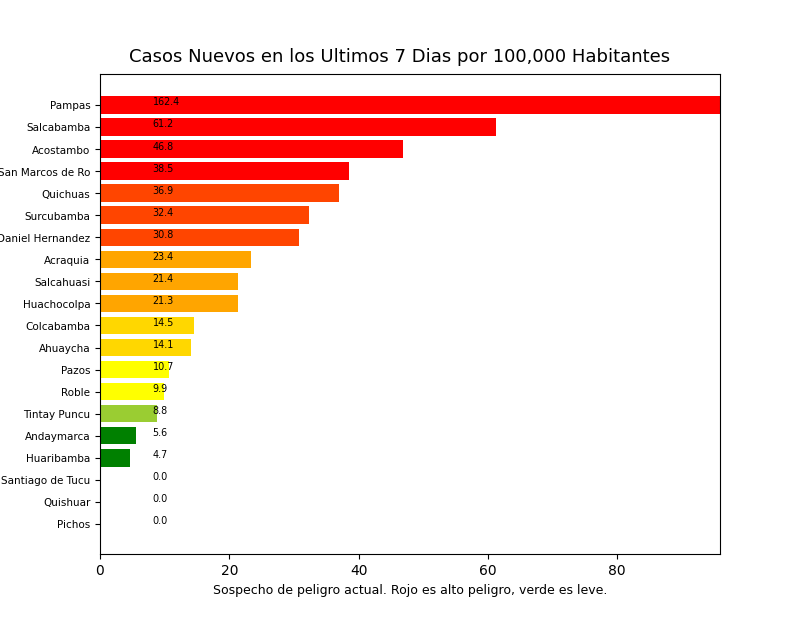 Tome en cuenta que es común tener casos reportados en un distrito donde personas no viven a veces causando resultados exageradamente alto o bajo y sesgos en los datos. Por eso, interprete los resultados como tendencias del distrito y sus distritos cercanos.