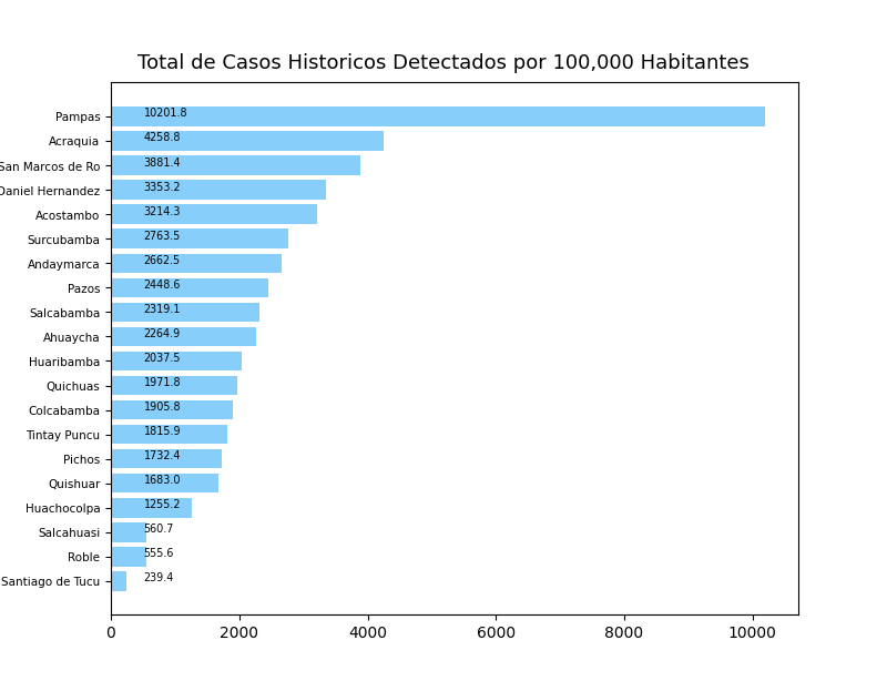 Casos de COVID-19 en HUANCAVELICA / TAYACAJA por Distrito