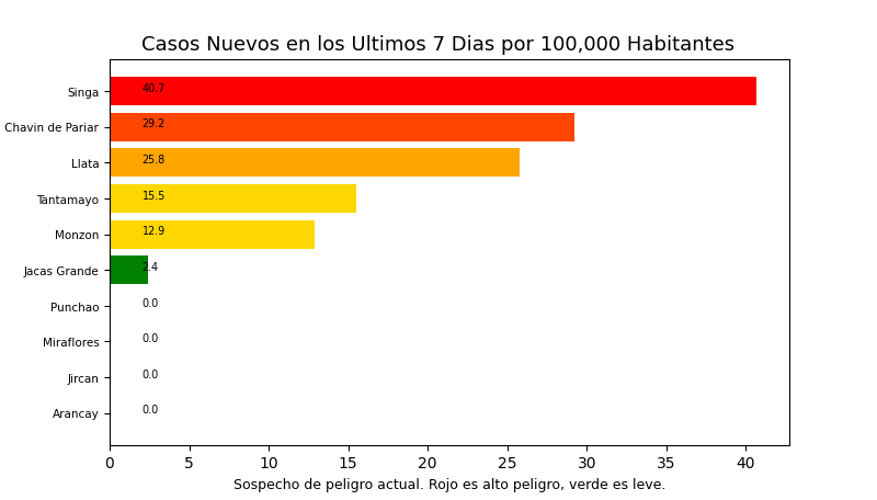 Tome en cuenta que es común tener casos reportados en un distrito donde personas no viven a veces causando resultados exageradamente alto o bajo y sesgos en los datos. Por eso, interprete los resultados como tendencias del distrito y sus distritos cercanos.