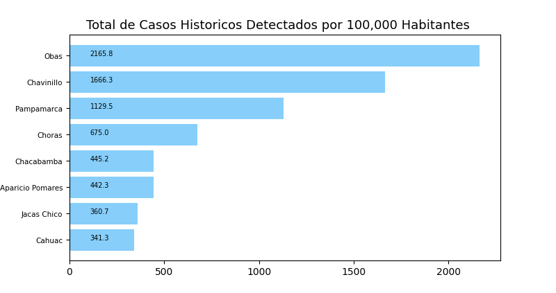 Tome en cuenta que es común tener casos reportados en un distrito donde personas no viven a veces causando resultados exageradamente alto o bajo y sesgos en los datos. Por eso, interprete los resultados como tendencias del distrito y sus distritos cercanos.