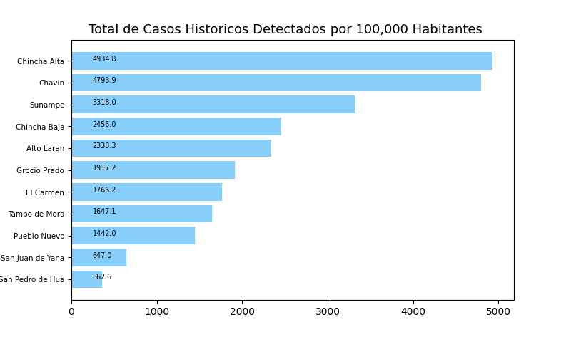 Tome en cuenta que es común tener casos reportados en un distrito donde personas no viven a veces causando resultados exageradamente alto o bajo y sesgos en los datos. Por eso, interprete los resultados como tendencias del distrito y sus distritos cercanos.