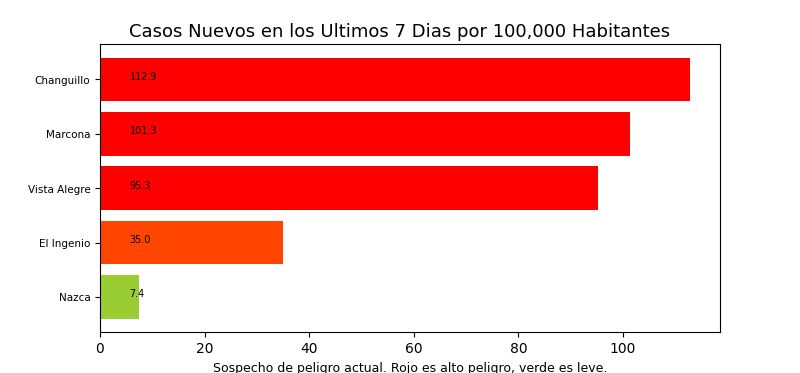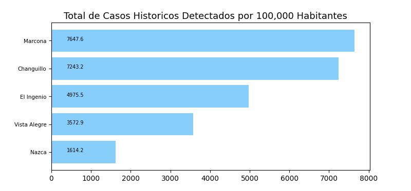 Tome en cuenta que es común tener casos reportados en un distrito donde personas no viven a veces causando resultados exageradamente alto o bajo y sesgos en los datos. Por eso, interprete los resultados como tendencias del distrito y sus distritos cercanos.