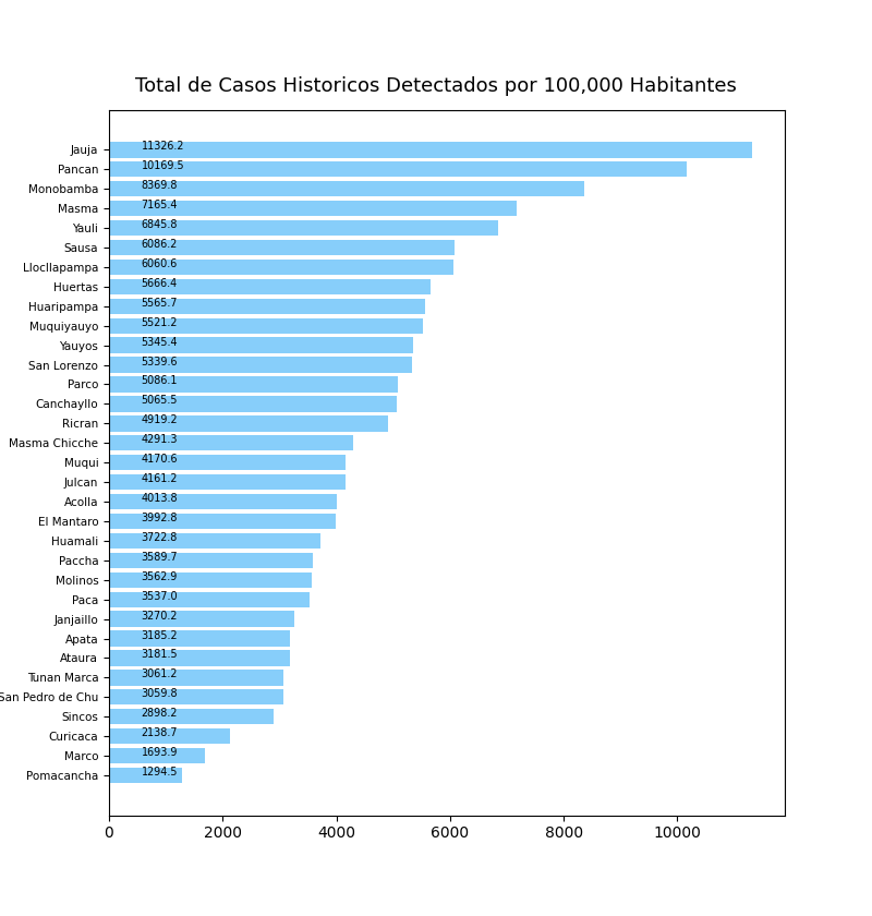 Casos de COVID-19 en JUNIN / JAUJA por Distrito