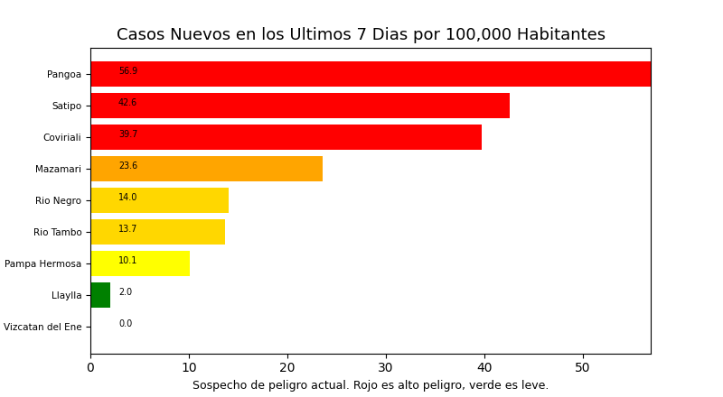 Tome en cuenta que es común tener casos reportados en un distrito donde personas no viven a veces causando resultados exageradamente alto o bajo y sesgos en los datos. Por eso, interprete los resultados como tendencias del distrito y sus distritos cercanos.
