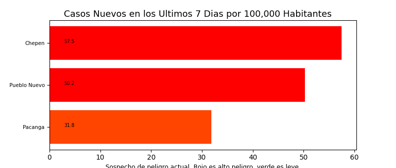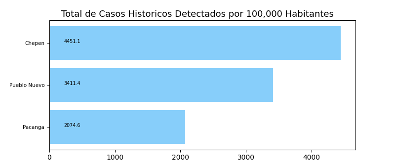 Tome en cuenta que es común tener casos reportados en un distrito donde personas no viven a veces causando resultados exageradamente alto o bajo y sesgos en los datos. Por eso, interprete los resultados como tendencias del distrito y sus distritos cercanos.