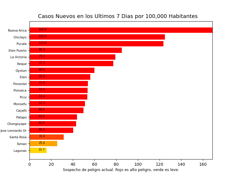 Tome en cuenta que es común tener casos reportados en un distrito donde personas no viven a veces causando resultados exageradamente alto o bajo y sesgos en los datos. Por eso, interprete los resultados como tendencias del distrito y sus distritos cercanos.