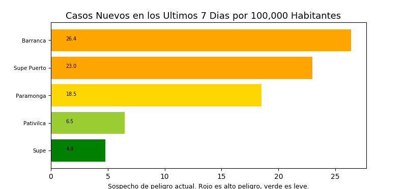 Tome en cuenta que es común tener casos reportados en un distrito donde personas no viven a veces causando resultados exageradamente alto o bajo y sesgos en los datos. Por eso, interprete los resultados como tendencias del distrito y sus distritos cercanos.