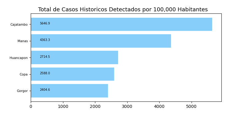 Tome en cuenta que es común tener casos reportados en un distrito donde personas no viven a veces causando resultados exageradamente alto o bajo y sesgos en los datos. Por eso, interprete los resultados como tendencias del distrito y sus distritos cercanos.