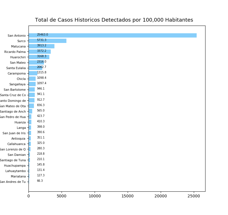 Casos de COVID-19 en LIMA REGION / HUAROCHIRI por Distrito