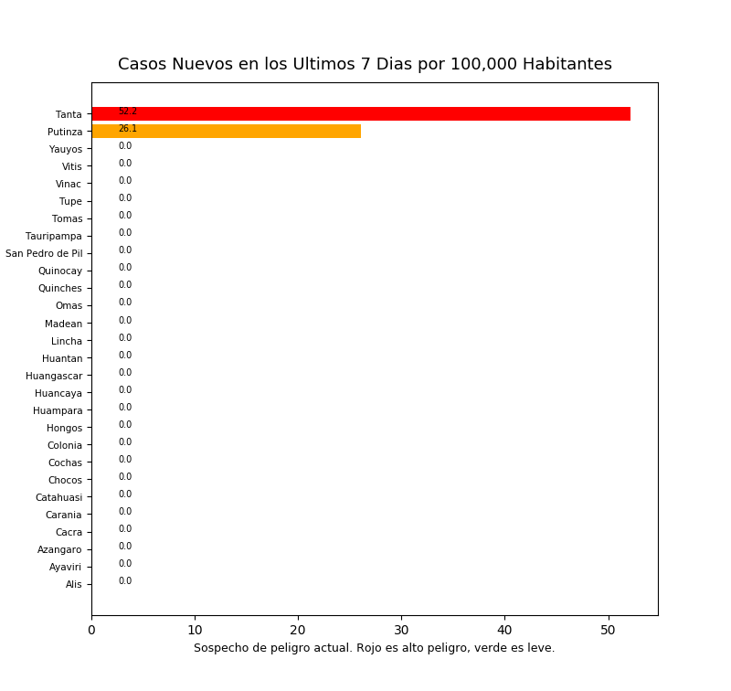 Tome en cuenta que es común tener casos reportados en un distrito donde personas no viven a veces causando resultados exageradamente alto o bajo y sesgos en los datos. Por eso, interprete los resultados como tendencias del distrito y sus distritos cercanos.