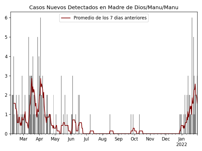 Casos de COVID-19 en MADRE DE DIOS / MANU por Distrito