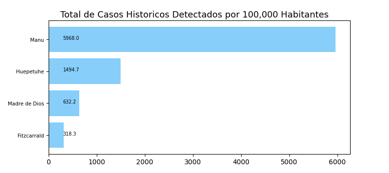 Tome en cuenta que es común tener casos reportados en un distrito donde personas no viven a veces causando resultados exageradamente alto o bajo y sesgos en los datos. Por eso, interprete los resultados como tendencias del distrito y sus distritos cercanos.