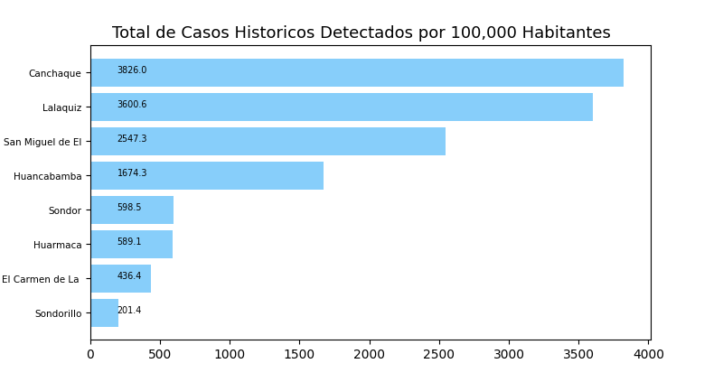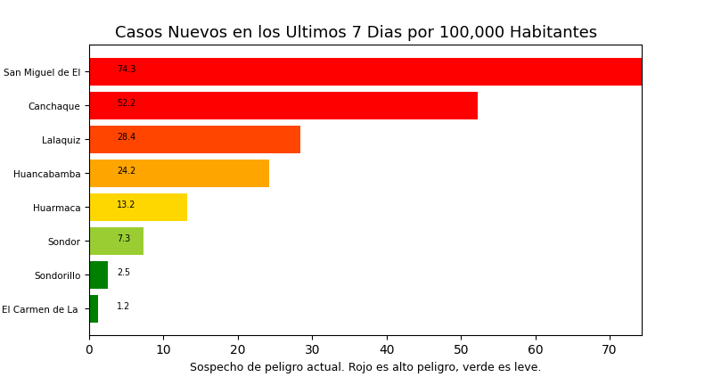 Tome en cuenta que es común tener casos reportados en un distrito donde personas no viven a veces causando resultados exageradamente alto o bajo y sesgos en los datos. Por eso, interprete los resultados como tendencias del distrito y sus distritos cercanos.