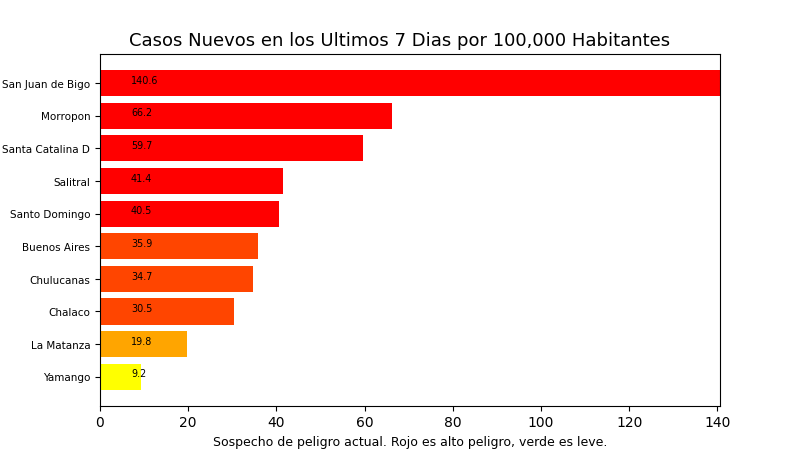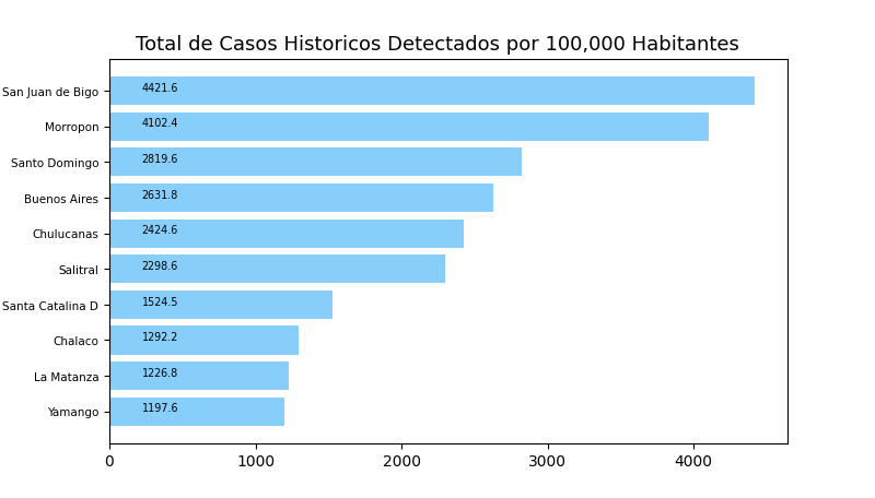 Tome en cuenta que es común tener casos reportados en un distrito donde personas no viven a veces causando resultados exageradamente alto o bajo y sesgos en los datos. Por eso, interprete los resultados como tendencias del distrito y sus distritos cercanos.