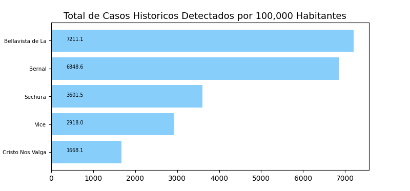Tome en cuenta que es común tener casos reportados en un distrito donde personas no viven a veces causando resultados exageradamente alto o bajo y sesgos en los datos. Por eso, interprete los resultados como tendencias del distrito y sus distritos cercanos.