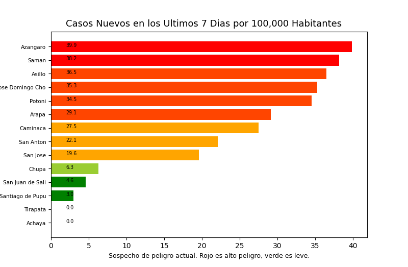 Tome en cuenta que es común tener casos reportados en un distrito donde personas no viven a veces causando resultados exageradamente alto o bajo y sesgos en los datos. Por eso, interprete los resultados como tendencias del distrito y sus distritos cercanos.
