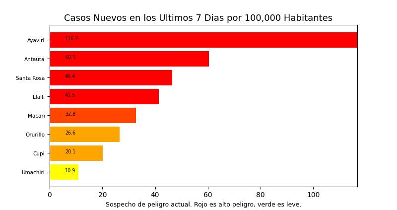 Tome en cuenta que es común tener casos reportados en un distrito donde personas no viven a veces causando resultados exageradamente alto o bajo y sesgos en los datos. Por eso, interprete los resultados como tendencias del distrito y sus distritos cercanos.