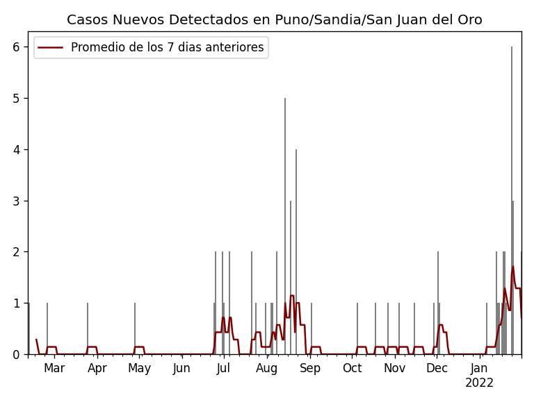 Casos de COVID-19 en PUNO / SANDIA por Distrito