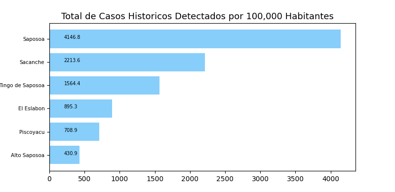Tome en cuenta que es común tener casos reportados en un distrito donde personas no viven a veces causando resultados exageradamente alto o bajo y sesgos en los datos. Por eso, interprete los resultados como tendencias del distrito y sus distritos cercanos.