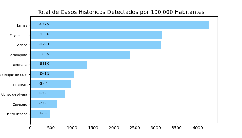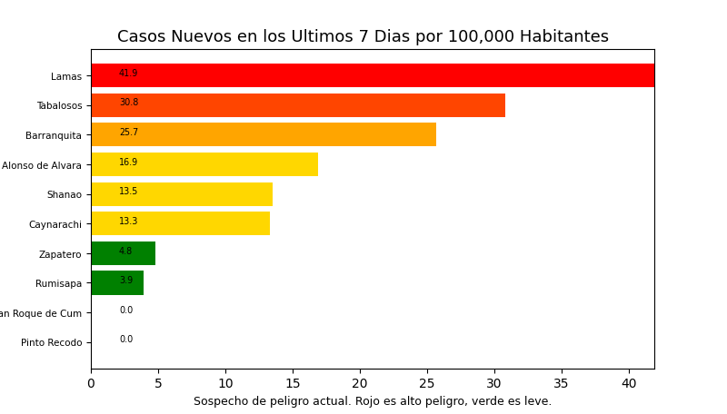 Tome en cuenta que es común tener casos reportados en un distrito donde personas no viven a veces causando resultados exageradamente alto o bajo y sesgos en los datos. Por eso, interprete los resultados como tendencias del distrito y sus distritos cercanos.