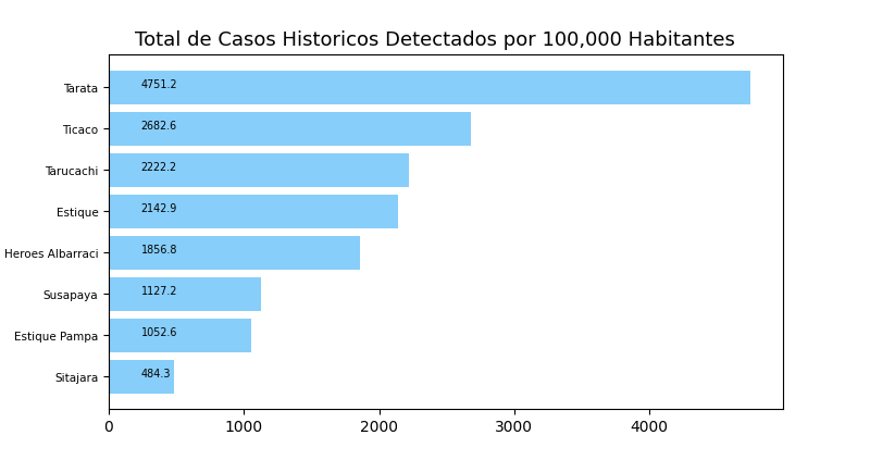 Casos de COVID-19 en TACNA / TARATA por Distrito