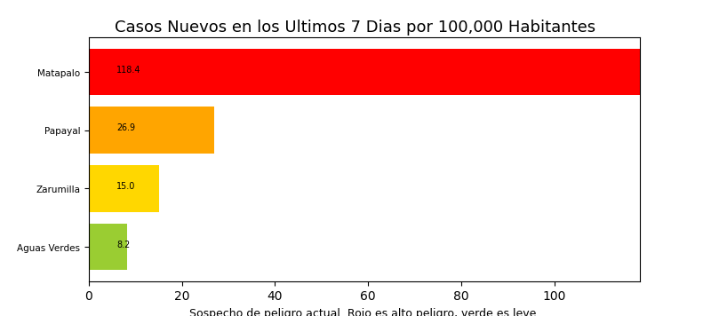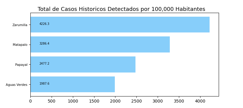 Tome en cuenta que es común tener casos reportados en un distrito donde personas no viven a veces causando resultados exageradamente alto o bajo y sesgos en los datos. Por eso, interprete los resultados como tendencias del distrito y sus distritos cercanos.
