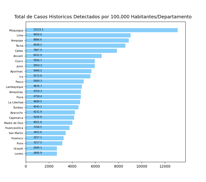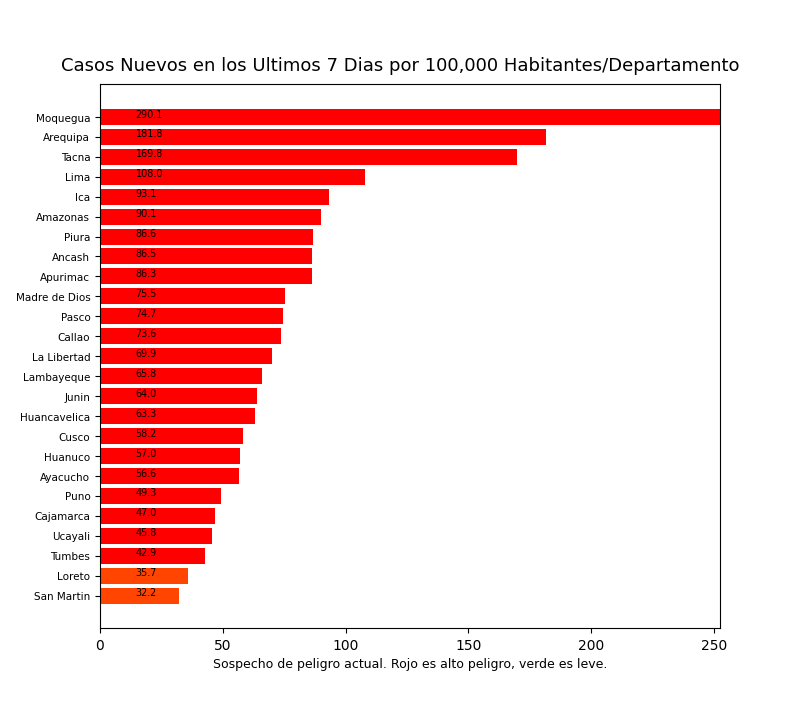 Tome en cuenta que algunos departamentos de Perú pueden tener mejor acceso a pruebas de COVID-19. Este puede causar sesgos en los números reportados abajo.